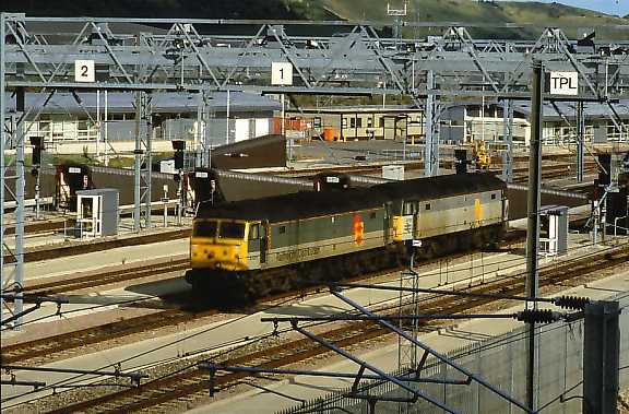 Two 47s (one is 47051) wait at Dollands Moor International freight yard. Back in 1999