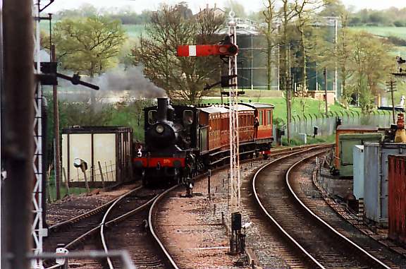 Nice view of Rolvenden yard from the useful viewing platform provided. Norwwegian enters the passing loop and prepares to wait for a down train from Tenterden.