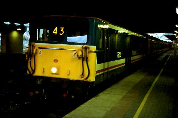 Travelling Post Office train pauses at Ashford, around 20.00hrs. Loco.73029 heads.