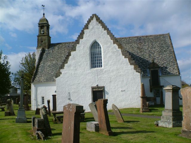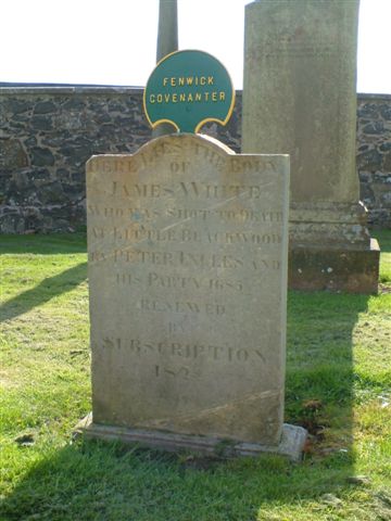 |  Another view of Fenwick Church, from the outside, showing the graveyard (where some martyrs were shot) (Right) The interior of the church at Fenwick. |  |