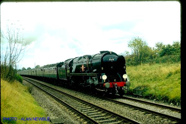 Southern Railway Class Merchant Navy 35028 on one of her earlier main-line turns in the 1970s. This shot was taken probably near Oxford.